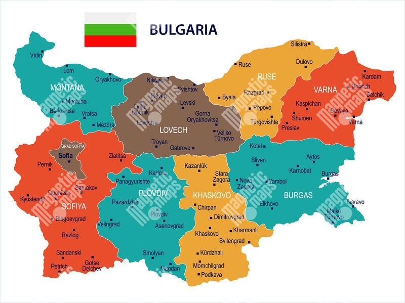 Magnetická mapa Bulharska, ilustrovaná, detailná