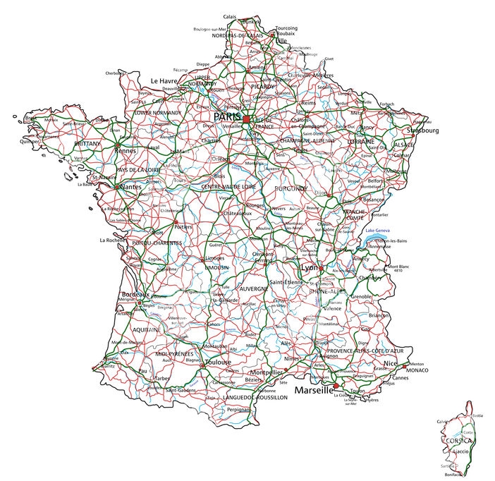 Magnetická mapa Francúzska, cesty, farebná