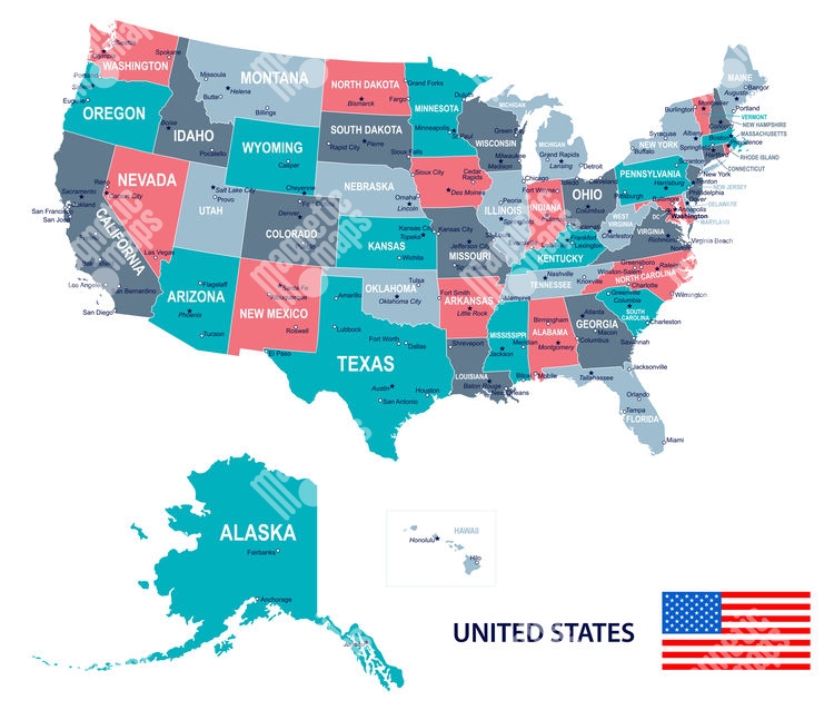 Magnetická mapa Spojených štátov Amerických, ilustrovaná, farebná
